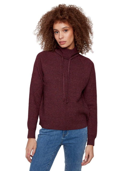 Textured Raglan Small Cowl Neck Knit Sweater C2939