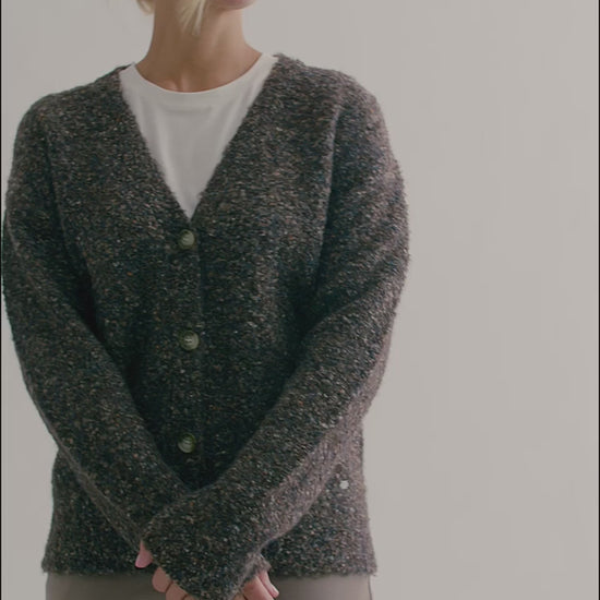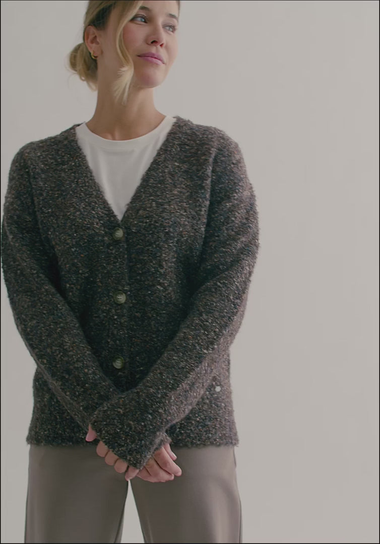 Made from a soft speckle knit wool blend, this cardigan wraps you in comfort while providing pleasant warmth. A perfect layering piece, weather at the office, at home our on vacation.